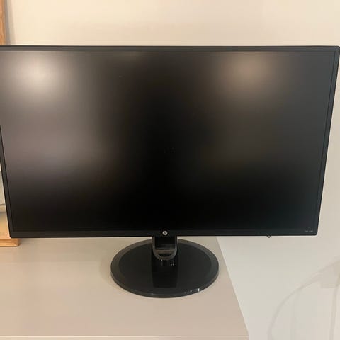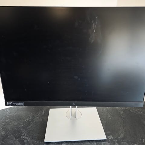 HP 24fw skærm på 24" i sølvfarve. Strømforsyning/adapter medfølger som vist på billede (mangler strømstik)