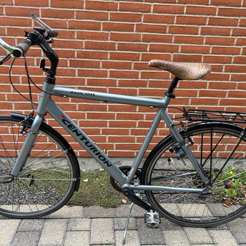 Centurion hybridcykel 7 indv. gear til mænd med stelstørrelse XL og 28"/700c hjul. Cyklen har sort stel med lige styr og fodbremse bagtil kombineret med håndbremse foran. Udstyret med bagagebærer og reflekser bagpå. Velegnet som pendler- og hverdagscykel til by- og landevejskørsel. Nye dæk og lygter. Lås med 2 nøgler.