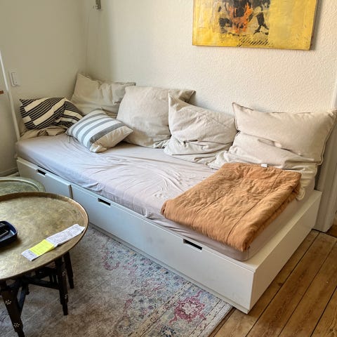 Boxmadrassen skal afhentes på 2. sal.