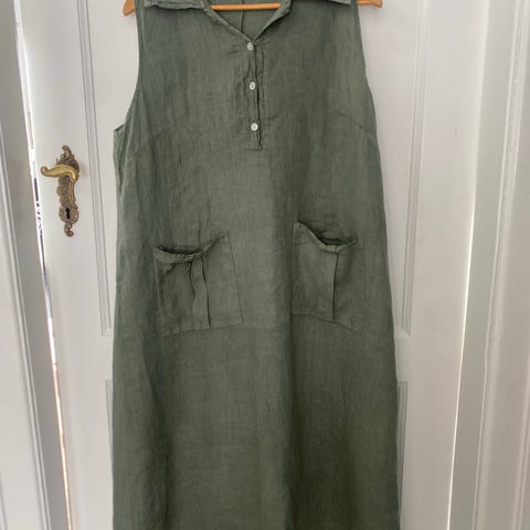 Dejlig skjorte/bluse til dame i størrelse 4XL. Ærmeløs model i lysgrøn polyester med v-udskæring og lille knapdetalje foran. Løs og let pasform, velegnet til hverdagsbrug. Helt ny. Pris 65 kr