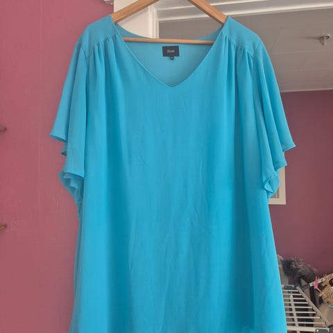 Let sommerbluse, marineblå, str. 4XL. Har været brugt en enkelt gang. Pris 50 kr. 95% polyester 5% elastan