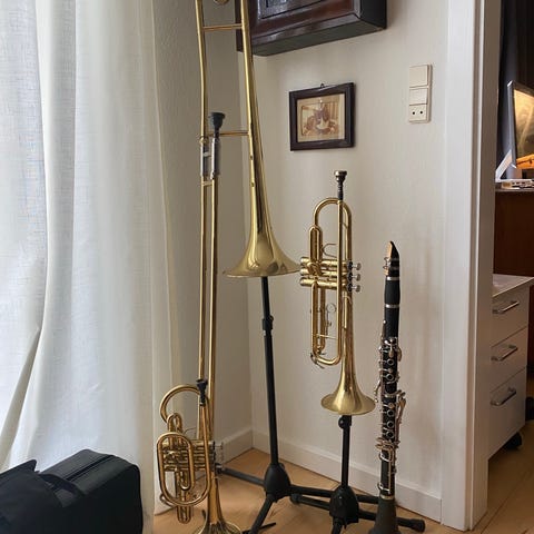 Gamle blæserinstrumenter brugt til udsmykning