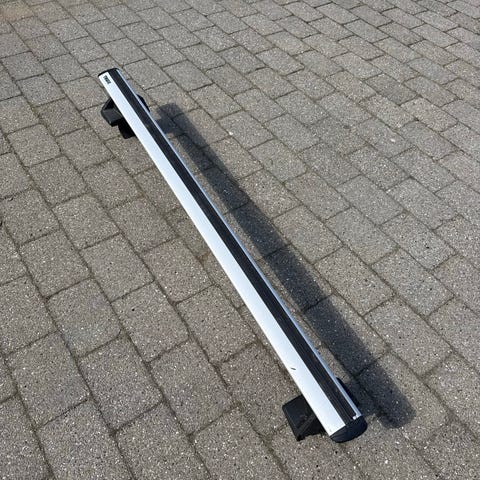 Thule tagbøjle i aluminium i sølv/sort. Tagbøjlen har integrerede fødder/beslag til montering på bilens tagkant. Maksimal last er angivet til 75 kg, og produktvægten er 7 kg (produktnr. 7105xx). Egnet som basis for montering af fx tagboks, cykelholder eller anden taglast, der passer til Thule-systemet og bilens specifikke tagtype og godkendte lasteevne.