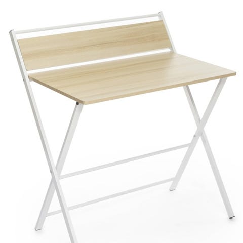 Et originalt skrivebord med hylde, som er meget praktisk på grund af det foldbare multifunktionelle design, da det tilpasser sig til behov, og giver mulighed for at udnytte plads. Dette trendy møbel er ikke nødvendigt at samle. Det kan nemt og hurtigt foldes ud og sammen til snildt at bringe det med overalt, eller til at opbevare det uden at det fylder for meget plads (i et skab, under sengen, bag en dør, bag et møbel, osv.). Det er et meget alsidigt og holdbart skrivebord, som understøtter en vægt op til 50 kg. Det har en hylde, som kan være foldet ud eller foldet sammen, alt efter behov, og som er den perfekte støtte til at placere bøger, krus, højtalere, flasker eller andre brugbare eller dekorerende ting. Takket været dens mål og egenskaber, er det den perfekte løsning til at bruge som arbejdsbord i hjemmet (i soveværelset, stuen, osv.).