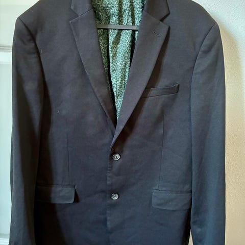 Jack & Jones Premium herreblazer i sort bomuld i størrelse 54. Klassisk enkeltknaps blazer med revers, brystlomme samt to forlommer. Indvendigt foret med 2 inderlommer. Velegnet som jakke til både hverdag og mere formelle anledninger. Lommerne skal lige sprættes op, da de ikke har være brugt.