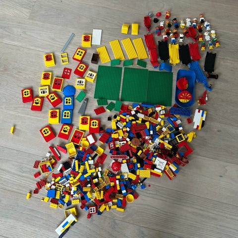 LEGO klodser blandet lot rød blå gul hvid grå
