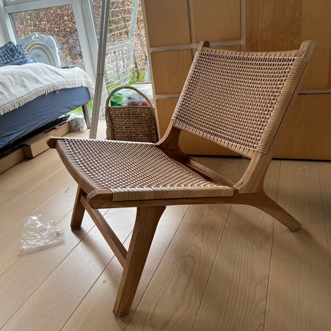 Stolen har et enkelt og rent design med sortmalet stel af teaktræ og ryg og sæde i flettet rattan. Udtrykket er klassisk og gør, at stolen nemt kan passe ind i din eksisterende indretning.