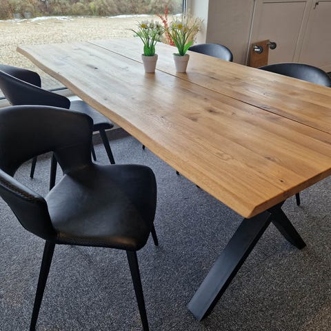 40 mm massivt plankebord hvidolieret egetræ med curve kant.