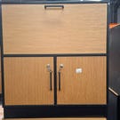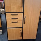 Skab i sort og lys eg med fire skuffer og to låger, der giver rigelig opbevaringsplads. Stilrent design med moderne håndtag.- Bemærk at mail, chat og beskeder ikke besvares, og varen skal købes på knappen "Gå til varen". Efter reservering af varen har du 10 dage til at afhente den i den butik, varen er på lager i.