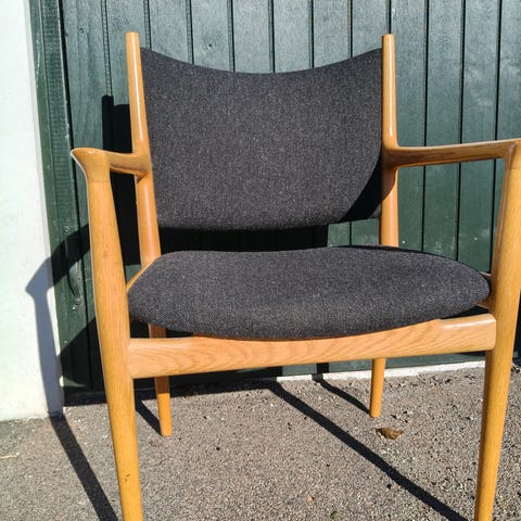 Står med stel i massiv egetræ og det originale stof i flot grøn farve