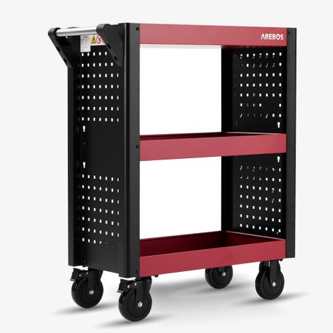 Arebos® Værkstedsvogn med 3 rum rød - 360° hjul med skubbestang