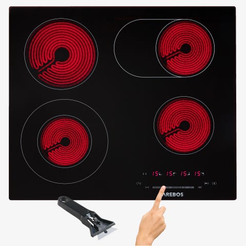 AREBOS' induktionskogeplader har en glaskeramisk overflade, som nemt kan tørres af med en let fugtig klud. Ved kraftigere tilsmudsning skal du blot bruge den medfølgende rengøringsskraber.