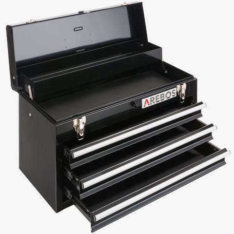 Værkstedskufferten fra AREBOS samler ikke kun et stort antal værktøjer, men er også nem at opbevare på en pladsbesparende måde takket være det kompakte design. Åbning og lukning af skufferne er meget let takket være de kuglelejrede skuffer.