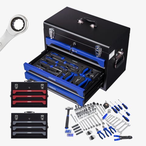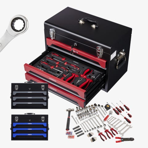 Den udstyrede værktøjskasse består af 172 dele i høj kvalitet! Værktøjet er ideelt til både gør-det-selv-folket og den professionelle håndværker. Fra forskellige skruetrækkere til hammer og tænger er der det rigtige værktøj til enhver opgave i dine egne fire vægge. Ud over den robuste kvalitet er der lagt særlig vægt på ergonomiske og skridsikre håndtag. Det betyder, at du altid har et sikkert greb, hvilket ikke kun gør dit arbejde lettere, men frem for alt minimerer risikoen for skader.