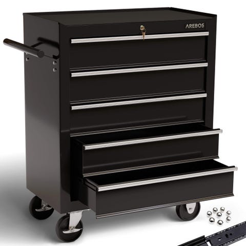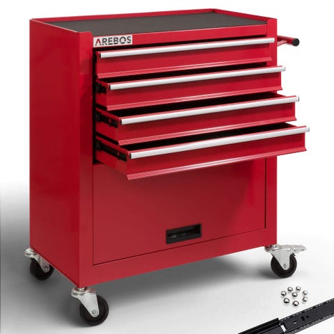AREBOS værktøjsvogn - med 4 skuffer inkl. værktøj og et skab