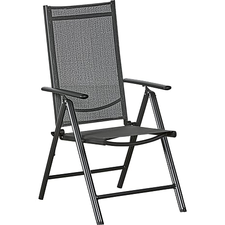 Det stabile aluminiumsstel sikrer et sikkert fodfæste og en holdbar konstruktion. Det vejrbestandige Teslin-vævede stof er åndbart, let at vedligeholde og tilbyder behagelig siddekomfort selv på varme dage – perfekt til regelmæssig udendørs brug.