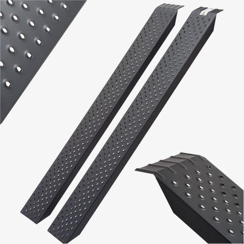 Du kan bruge disse tilkørselsramper enkeltvis eller sammen, afhængigt af dine behov. Du vil helt sikkert ikke undvære stålramperne af høj kvalitet fra AREBOS i fremtiden. Påkørselsrampens støtteender har en affaset støtteflade, som giver masser af stabilitet og forhindrer, at rampen og køretøjet glider.