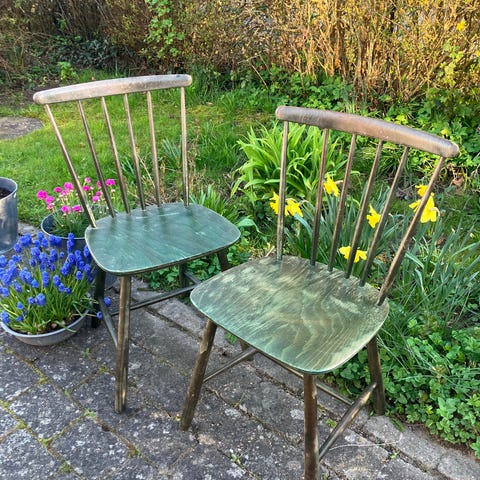 4 Fine Farstrup stole med lette brugssporz. Sælges samlet for 1000 kr.