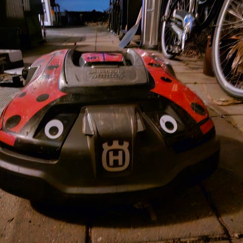 Den har vist sig at være lige lille nok til vores over 900 m2 og fordi jeg har fået en som ikke bruger kanttråd.