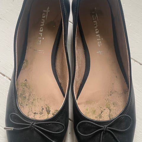Tamaris ballerinasko str. 39 beige med sort lakdetalje