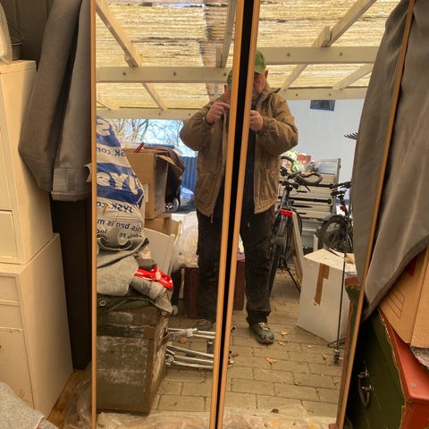 Spejl. Stort 140x90x0,5cm Bortgives.