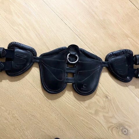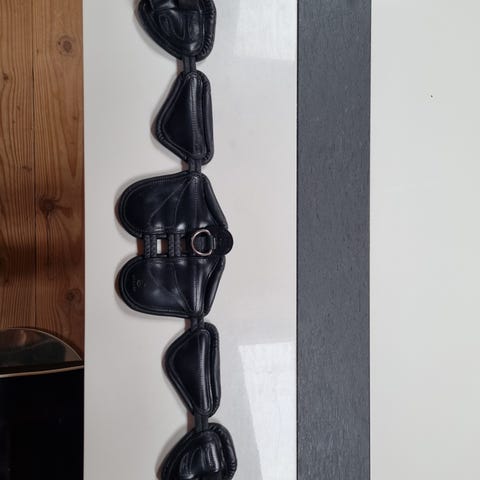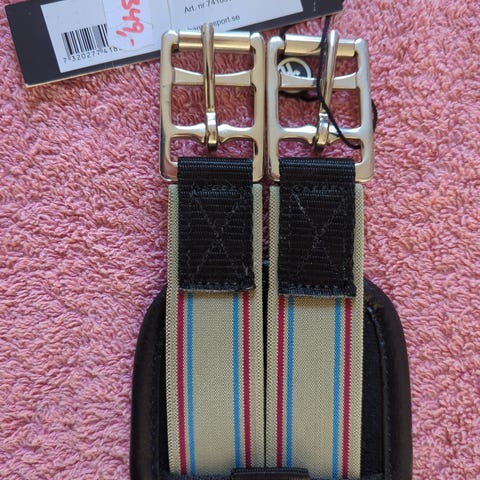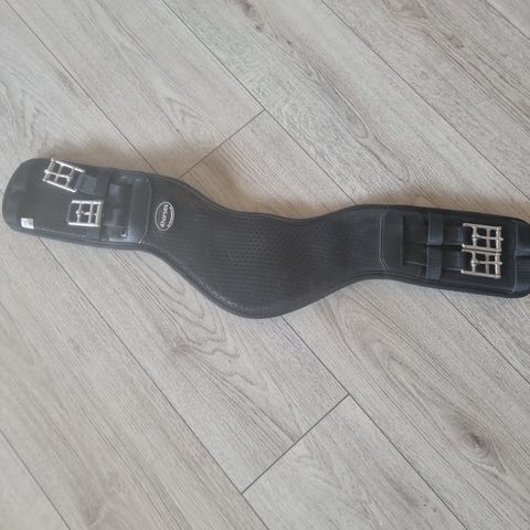 Acavallo Comfort Gel gjord i sort, længde 65 cm. Gjorden har elastik i enderne og rustfri stålspænder. Udformningen er anatomisk med bred midterdel og D-ring.