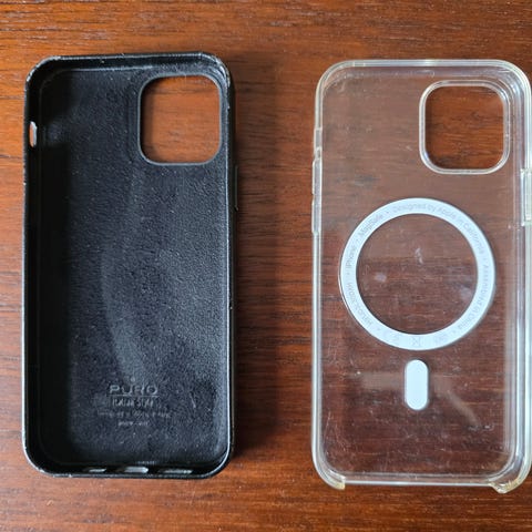 Apple mobilcover med MagSafe. Coveret er designet til en iPhone-model med tre kameraer og stor skærm. Bagsiden er semitransparent med markeret MagSafe-ring, og kanterne er sorte. Coveret beskytter telefonens bagside og sider og er kompatibelt med MagSafe-tilbehør og trådløs opladning, hvor MagSafe-funktionen understøttes af telefonen.