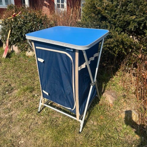 Skønt 90er campingbord med stole, en kuffert med det hele i et. Lidt små rustpletter udvendigt, men fuld funktionelt. Stolene er perfekt stand. 2 skamler og 2 med ryglæn.