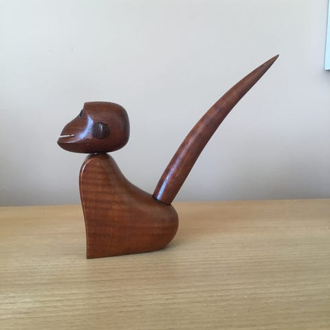 To-delt træfigur. Jeg ved ikke hvad træsorten er. Jeg sender ikke og ignorerer henvendelser angående dette, osse selvom du tilbyder at betale porto