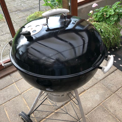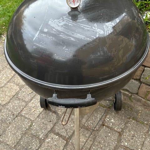 Weber kuglegrill kulgrill i sort emaljeret stål. Grillen har låg med ventilationsspjæld og håndtag, samt bund med askebeholder. Udstyret med rund grillrist og hjul for nem flytning i haven eller på terrassen. Velegnet til kul- og briketgrillning udendørs.
