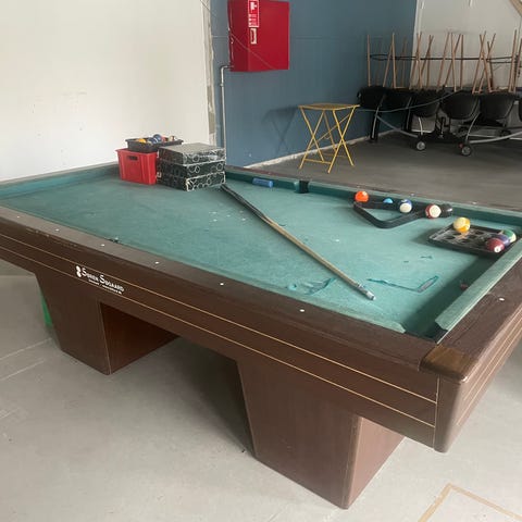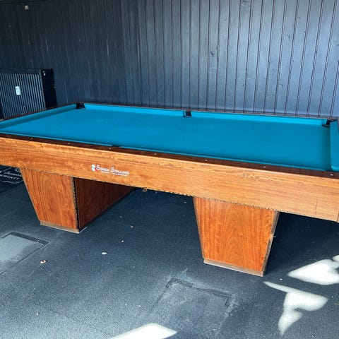 Smukt P.O. Pedersen billardbord træ grøn dug