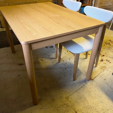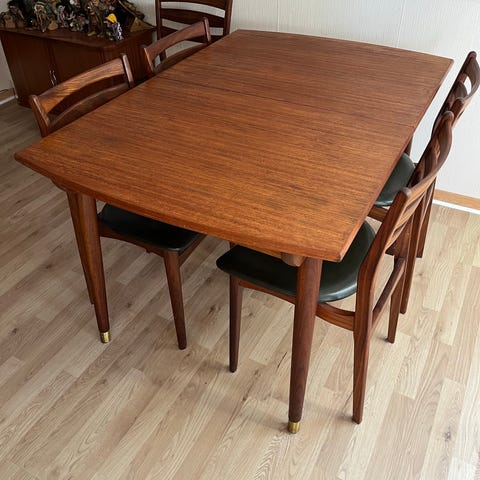 Bordet er i rigtig fin, men selvfølgelig brugt stand. Har ofte stået med en dug henover.