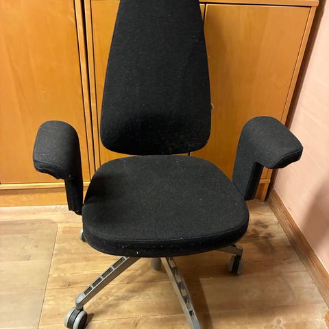 Kontorstol med armlæn sort stof krom stel