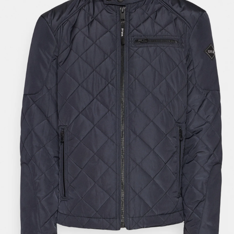 Mertra windbreaker til mænd i størrelse S. Jakken er blåternet med hætte og gennemgående lynlås foran. Den har netfor indvendigt og elastik ved ærmerne. Egnet som let overgangs- eller sommerjakke.