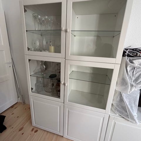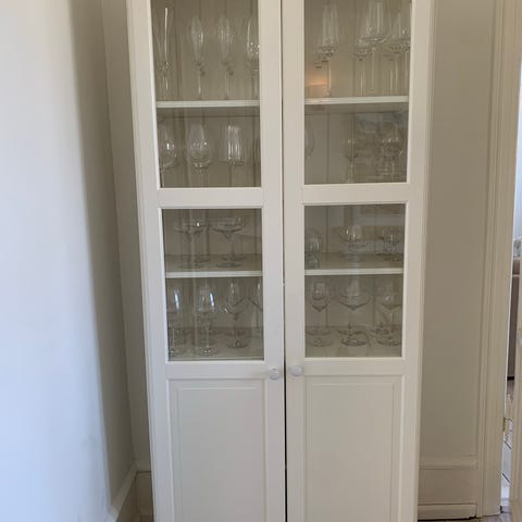 To vitrine /reoler til salg billigt skal hentes hurtigt ……..stået i vores stue og rigtig rummelige og anvendelige vedhæftede billeder viser et skab og der er to ens skabe til salg