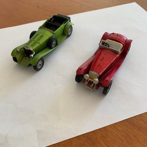 Modelbiler klassiske biler legetøjsbiler rød og pink