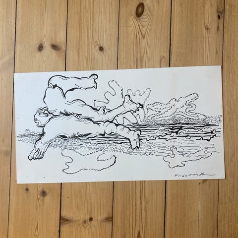 Stort og skønt litografi af Svend Wiig Hansen i gammel træramme. Dette fra 1968. Signeret og nummereret 18/50.