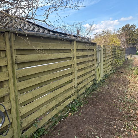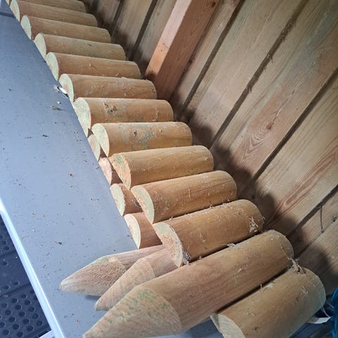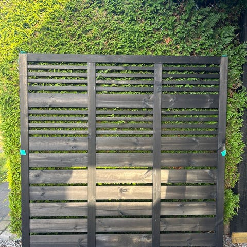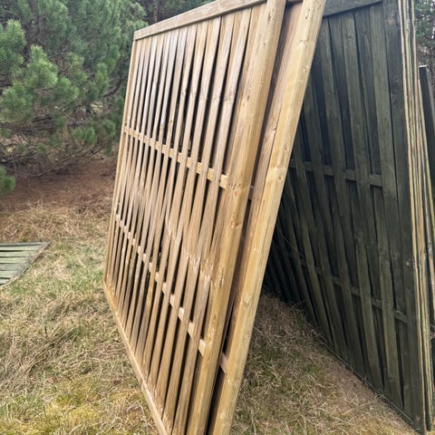 Træhegn i form af stakit i varmebehandlet træ Ubehandlet lyst træ, som kan efterbehandles med maling eller træbeskyttelse efter behov. Leveres som samlede sektioner, der kan opsættes langs terrasse eller indkørsel afhængigt af ønsket længde 187 cm højde 80 cm, har 10 sektioner pr stk 200 Kr Prisen er fast.