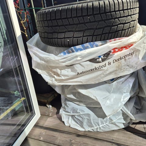 Vinterdæk med fælge og hjulkapsler. Har siddet på Suzuki Vitara. 2 af dem kunne godt trænge til at blive udskiftet.