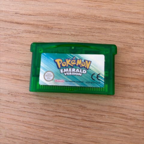 Nintendo Pokémon Emerald Version spil til Game Boy Advance. Er spil i Pokémon-serien, hvor spilleren udforsker Hoenn-regionen, samler og træner Pokémon og deltager i kampe. Spillet er på kassette til Game Boy Advance og leveres med original æske og manual efter billederne.
