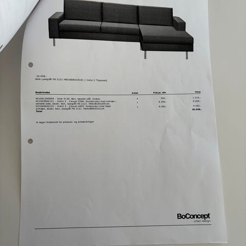 Sofaen koster 23.190,- hvis den skulle købes fra ny i dag hos BoConcept.