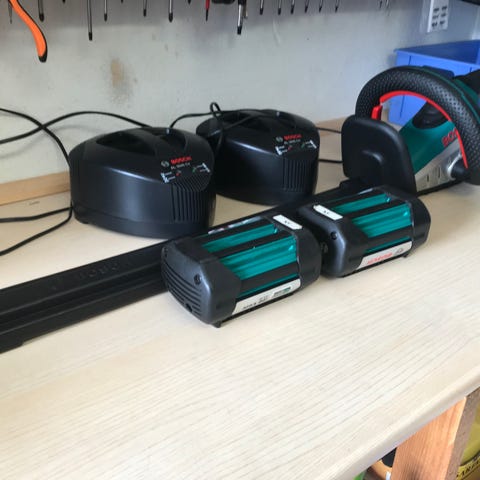 2 stk batterier 18V og 35 Gardena græstrimmerknive