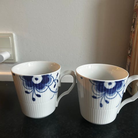 Royal Copenhagen Blå Mega Riflet krus og kande hvid blå porcelæn