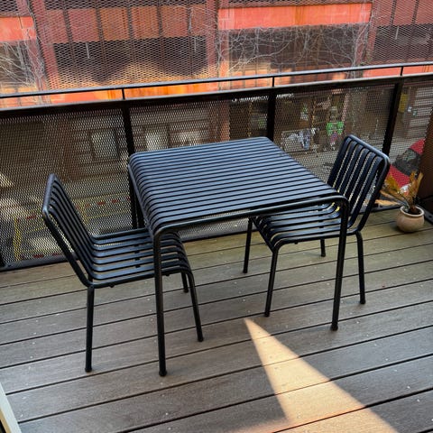 3 stk. Palissade stole i galvaniseret stål. Lille rust skade i venstre side på alle tre. Sælges samlet.
