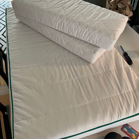 IKEA madrasovertræk i hvid. Overtrækket er quiltet og har stropper i hjørnerne til fastgørelse omkring madrassen. Egnet som beskyttelse af madras i enkeltstørrelse og kan bruges i soveværelse, gæsteværelse eller på børneværelse.