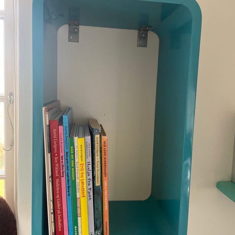 Har stået på et børneværelse, derfor der er malet vand, strand og græs på topplanene.