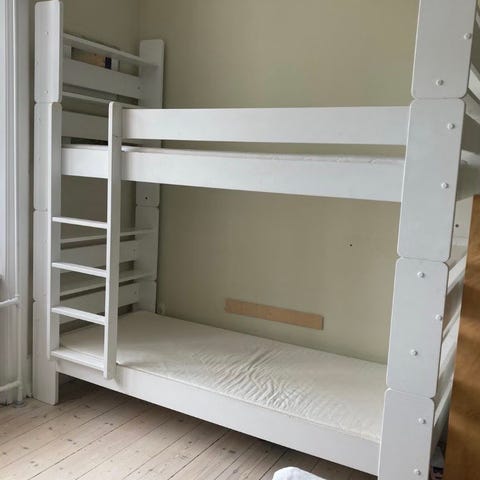 hvilket gør køjesengen rigtig stabil og solid så hver soveplads kan klar en vægt på op til 115 kg.