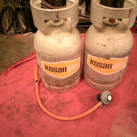 Aluminiumsgasflaske, 6 kg., med ca. 1/3 gas og regulator 200 kr