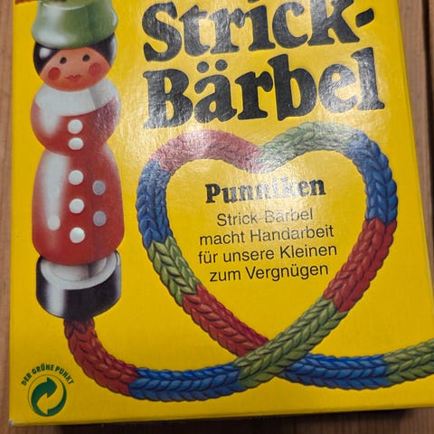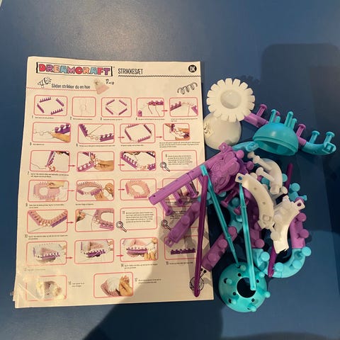 Strikke lise, Strikke lise med strikke pind og strikke anvisning. Indeholder en af dem på kassen. Aldrig brugt.