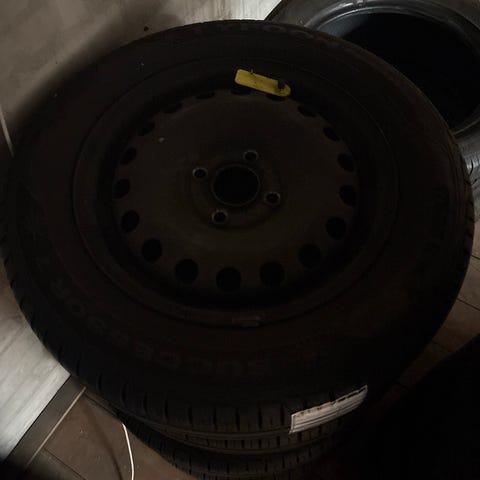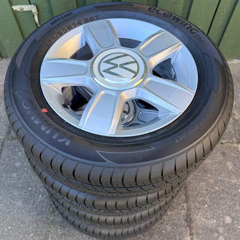 Fælge + Dæk. Har siddet på en VW E-UP. Dækkene er af mærket GoodYear og har model navn Efficient Grip compact.